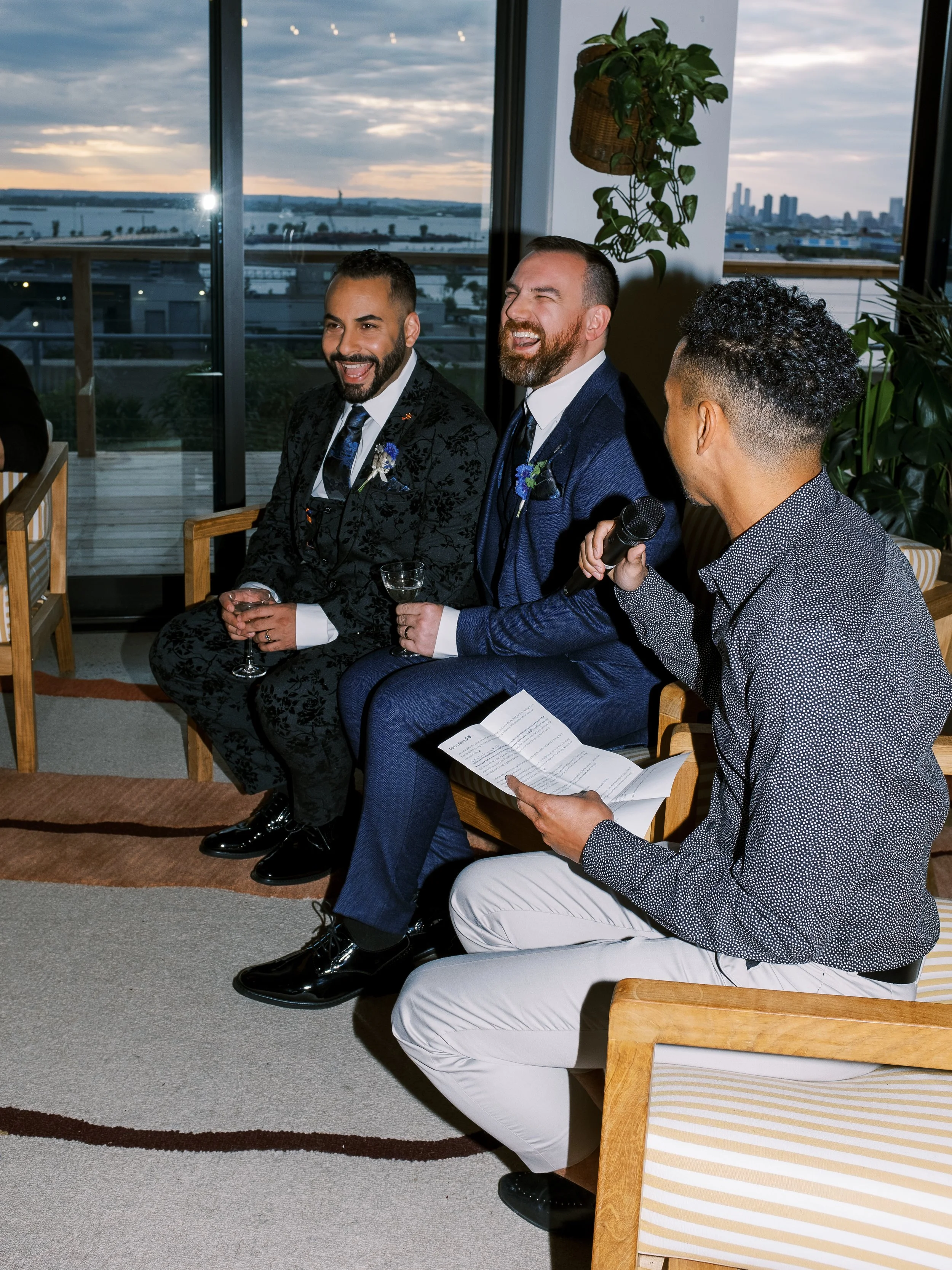 The third couple to tie the knot during PGIB 2023 were David (he/him) & Ken (he/him). A pair of artists & gamers living in Brooklyn (with their 3 cats), David & Ken had been together for over 3 years. Having first met on Tinder, their in-person love story began with a hilarious, memorable, and embarrassing interaction which—fortunately for them both—led to the ice being broken very quickly. Their road to becoming committed partners and each other’s best friend soon followed, and they made it official as husband & husband during PGIB 2023!